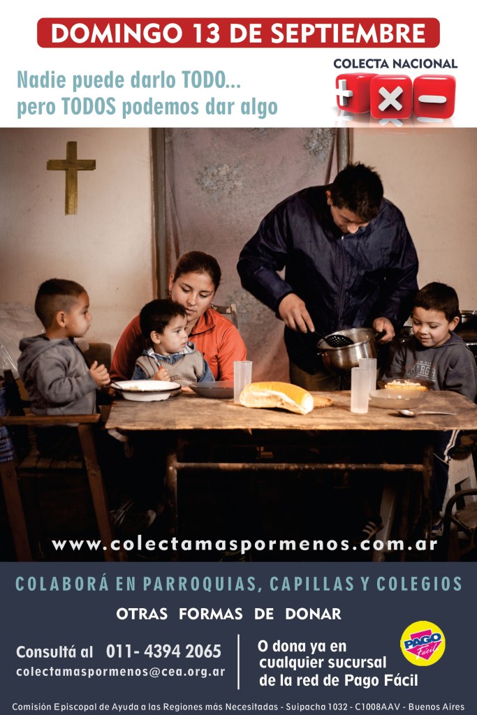 Todo lo recaudado durante las misas del domingo 13 de septiembre será destinado a está colecta nacional.