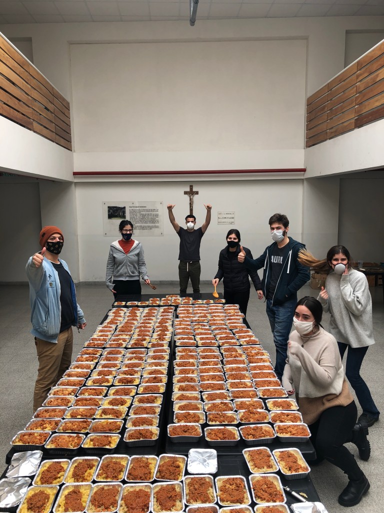 Los jóvenes de nuestra parroquia se encuentran cocinando viandas para entregar a los lugares más vulnerables de nuestra comunidad.