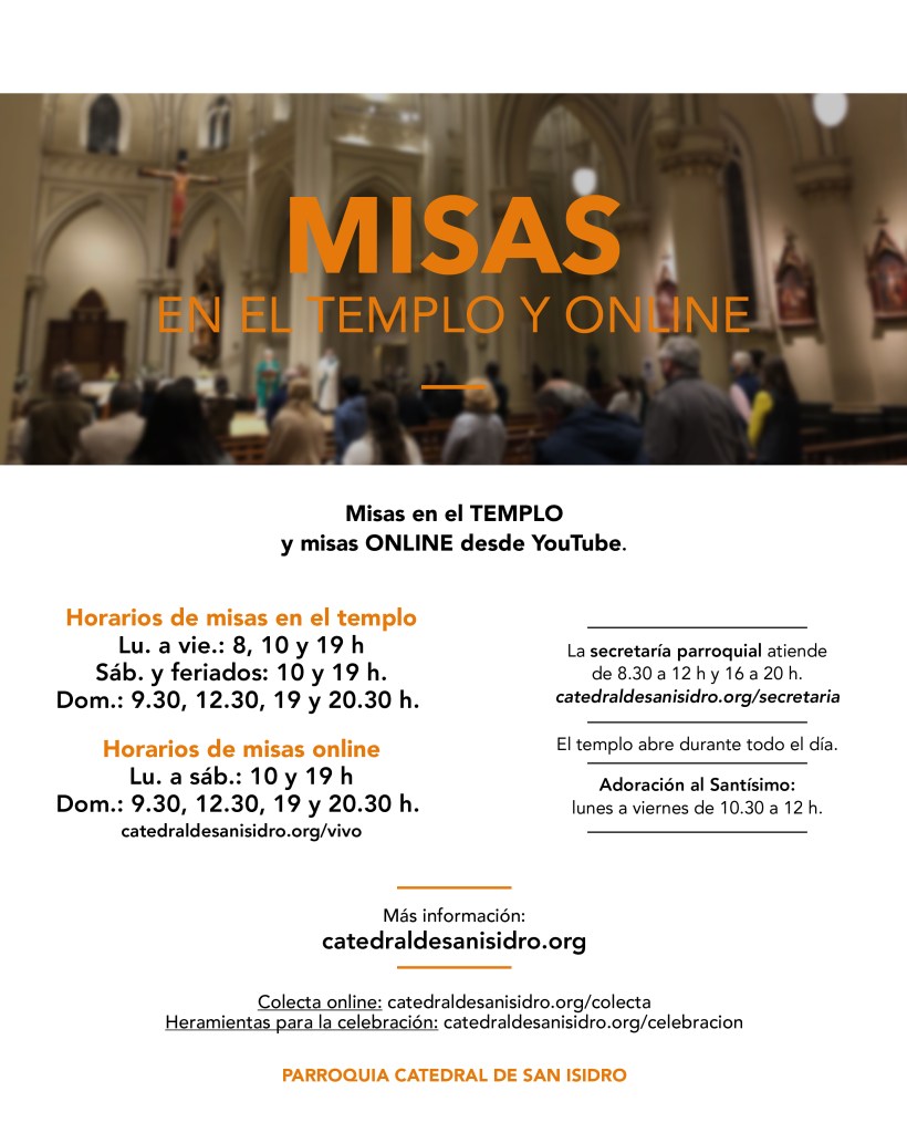 Las misas se seguirán transmitiendo en vivo como se viene haciendo: catedraldesanisidro.org/vivo