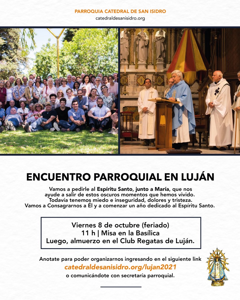 El viernes 8 de octubre (feriado) nuestra comunidad de la Catedral tendrá un encuentro parroquial en Luján. Queremos invitar a todos.