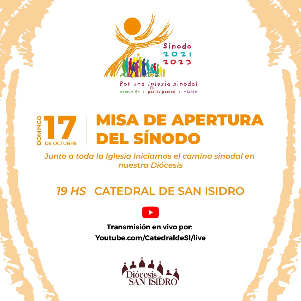 Junto a toda la Iglesia, iniciaremos el camino en la Diócesis con la celebración de la Misa de apertura que presidirá nuestro Obispo Oscar Ojea el domingo 17 de octubre a las 19 h en la Catedral de San Isidro.