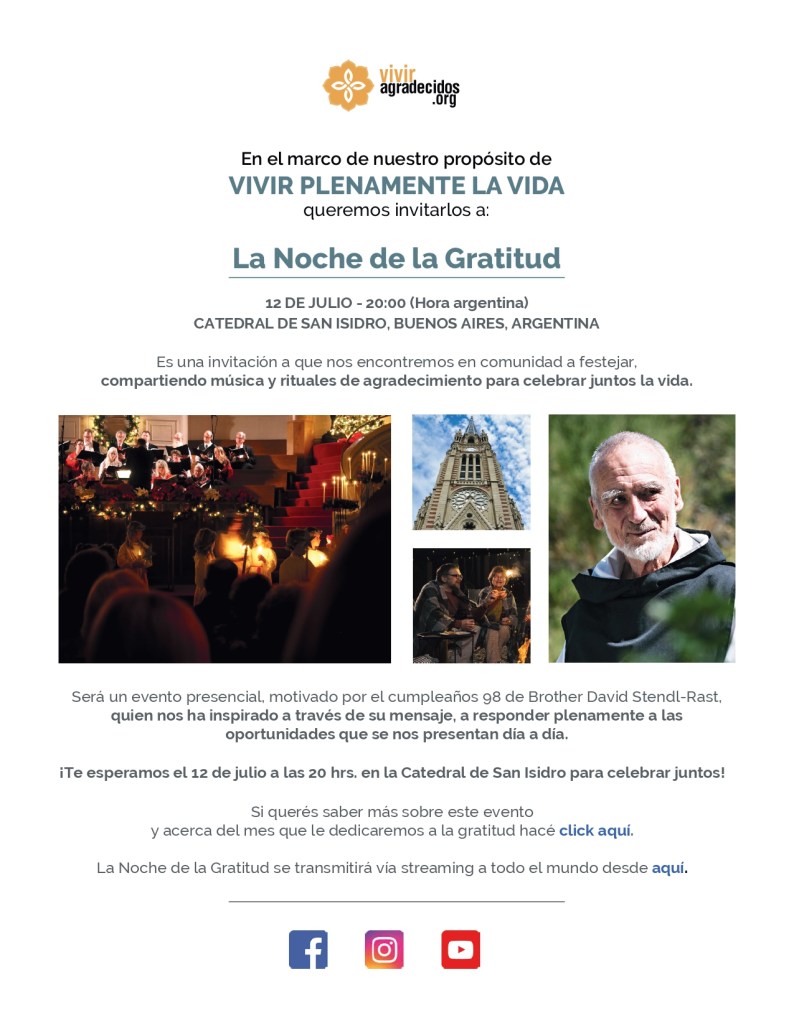 El viernes 12 de julio, a las 20 h, se celebrará en nuestra Catedral «La Noche de la Gratitud».